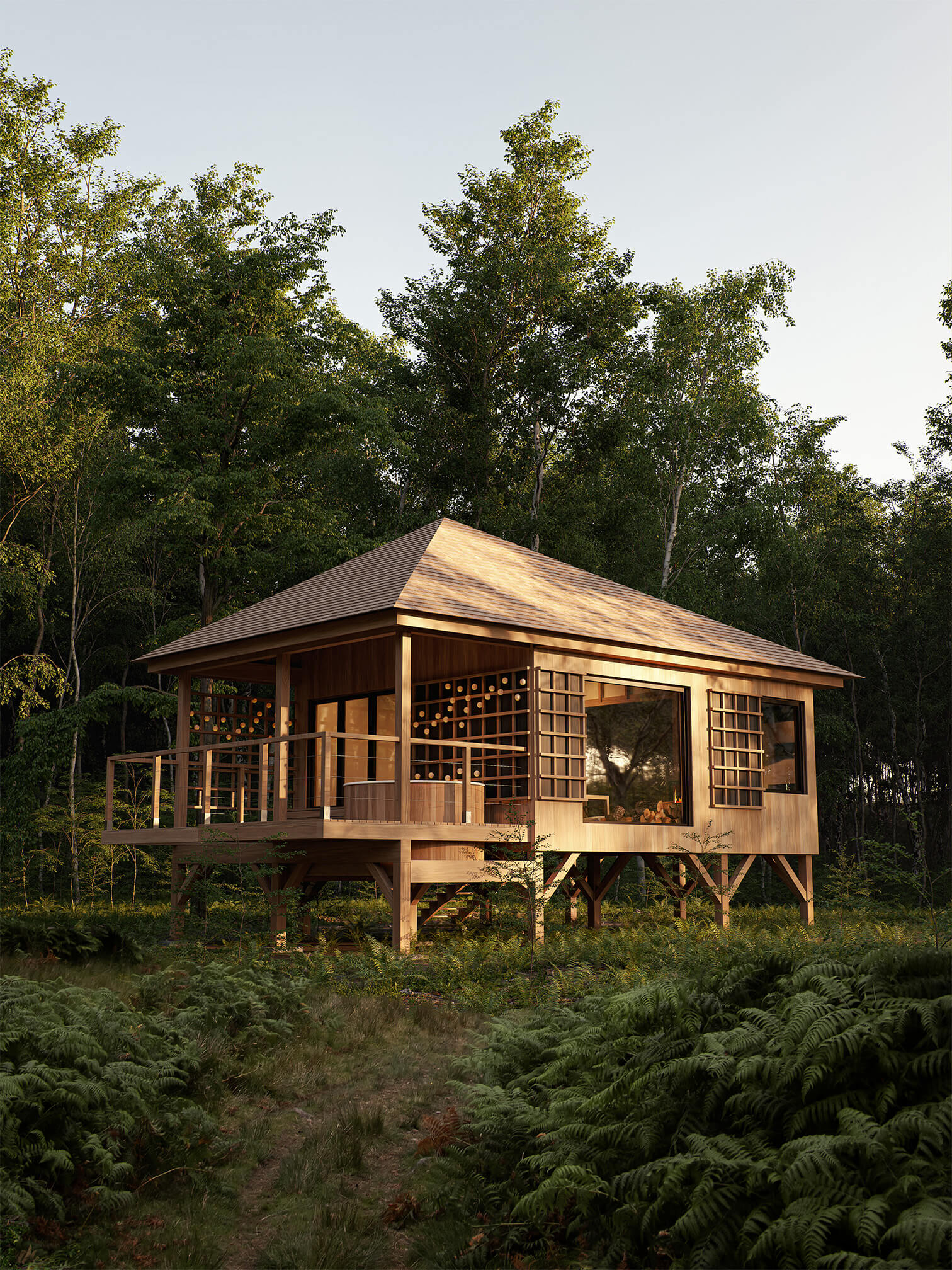 Le Ryokan vous emmenera dans une ambiance japandi. Perché à 1.5m de hauteur et ouvert sur les sapins vosgiens grâce à ses grandes baies vitrées, vous pourrez profiter de votre séjour en toute quiétude et intimité.